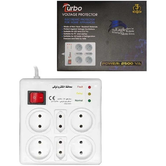 طول سیم 3 متر | قدرت 2500VA | تهیه شده از مواد نو مقاوم در برابر حرارت | مناسب برای انواع یخچال، فریزر، ساید بای ساید،انواع تلویزیون LED-LCD، کامپیوتر و لپ تاپ | محافظت از نواسانات برق شهری | دارای 3 چراغ نشان دهنده وضعیت | دارای 24 ماه گارانتی